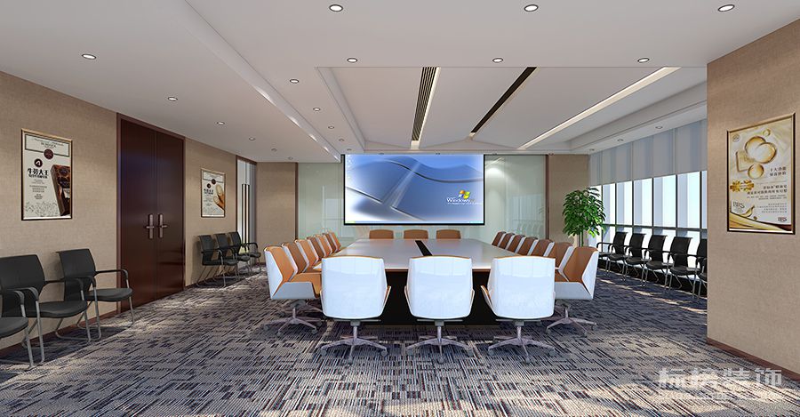 对整体空间进行平面规划及软装家私设计搭配,并针对大会议室、开放洽谈区及总裁办公室