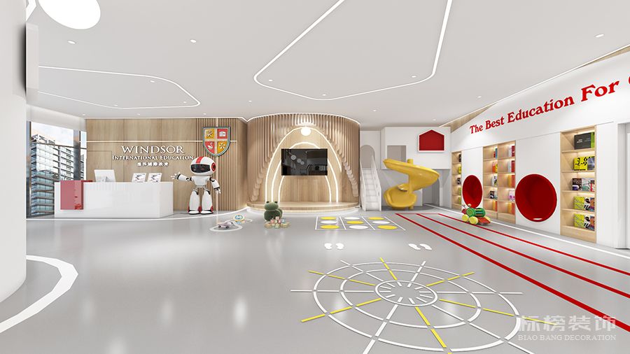 整体为比较纯净的白色和松木色为主,地板则选用灰色耐脏的色号,合理的色彩搭配再加上适合的空间结构为老师学生带来欢快的环境萦绕,同时使家长在进入机构时不会觉得过于拥挤杂乱,给家长留下优秀的第一映像。