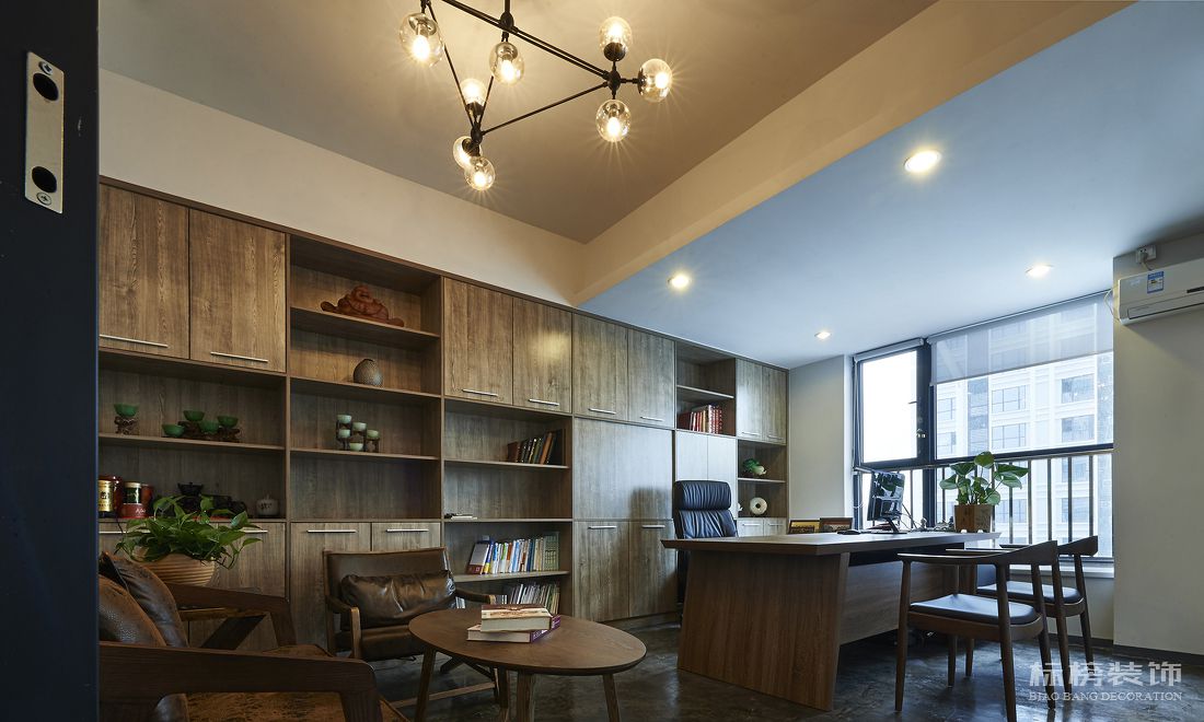 中国古典中式办公室装修讲究典雅有书卷气,中国古典中式办公室装修风格以宫殿建筑的设计风格为代表,希望在整体上体现出一种气势恢宏、壮丽华贵、细腻大方的大家风范。在这种基础上面,家居部分看重文艺气息,擅用字画、卷轴、古玩、金石、山水盆景等中国常见的物件加以点缀,渲染出书香雅气。